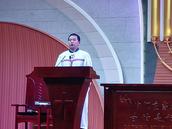 接下来,是谢渊传道的一堂证道。在开讲前,他问大家,今天是什么节?台下会众异口同声回答说“父亲节”!接着,他诙谐的说,今天这会儿在主台上就站在两位父亲,说一位是主持人张绍兵弟兄,另外一位就是他自己。