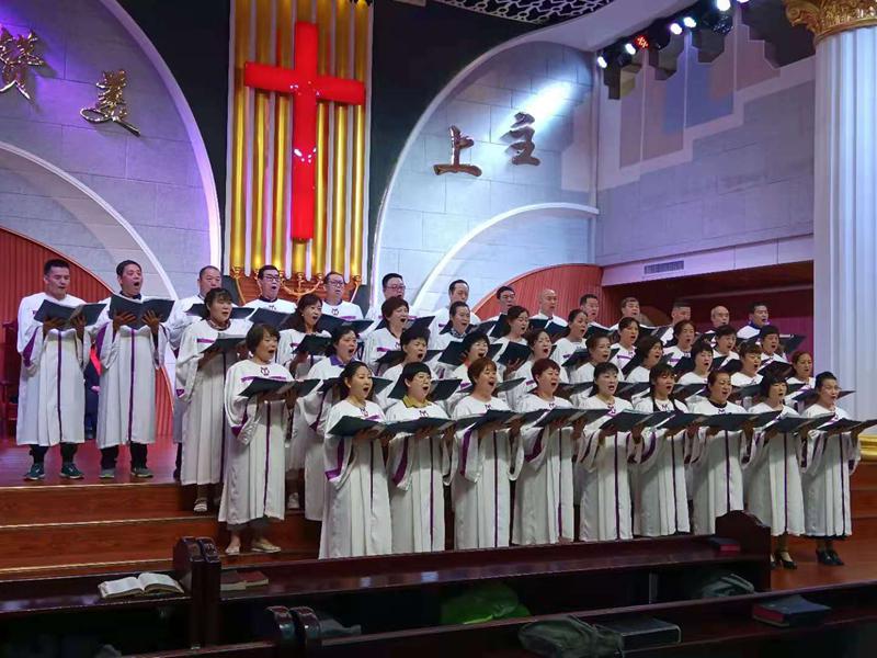 首先是教会迦南诗班登台献唱,在优美钢琴音乐伴奏下,诗班弟兄姊妹满怀对天父阿爸的爱,献唱了《荣归天父歌》《赞美耶和华》两首赞美诗歌。