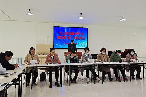 4月15日,吉林省白山市基督教两会召开第四届第三次委员会会议,全体委员参加。白山市基督教两会秘书长赵轩牧师主持会议,主席兼会长张来君牧师做2020年工作总结。