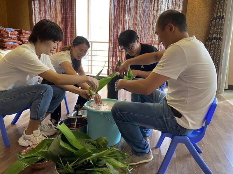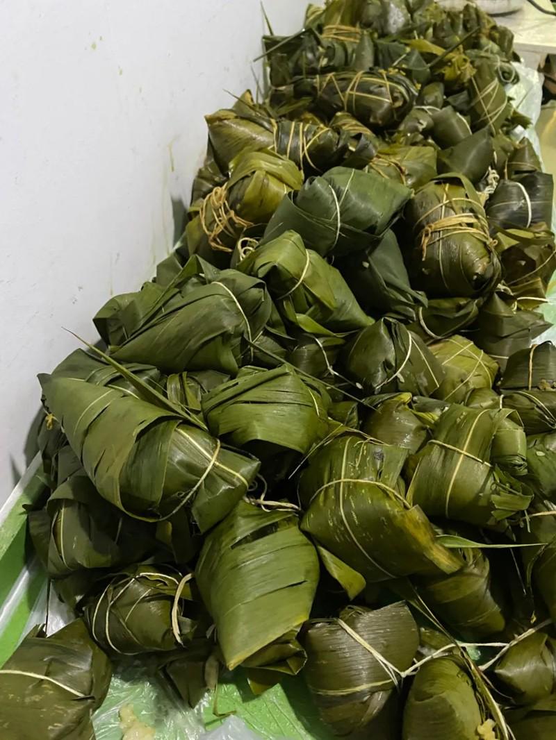 从早晨到晚上,大家连续工作。在弟兄姊妹们的辛苦劳作下,四百多个三角形、牛角形、长条形等各式各样的漂亮粽子新鲜出炉。