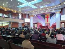 在这期间,主持人周顺利牧师多次穿插代祷,也多次带领大家歌唱了赞美诗《人的生命只有一次》《磐石磐石耶稣基督》。使祷告会显得生动活泼、气氛热烈。
