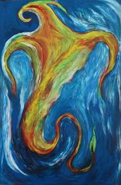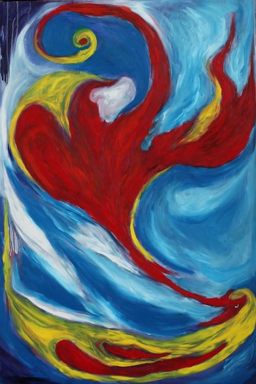 好几次,我被朱帆油画的大胆色彩吸引,尤其抽象作品《境界》的浓墨重彩最让人联想他们生活中的深刻。对爱写作也爱画画的我来说,其实上门亲自聆听故事比看朱帆的画作动机更强。