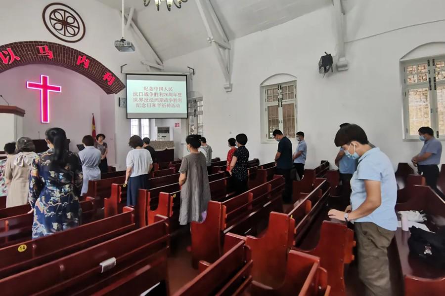 江苏路基督教堂、观象路教堂、清和路教堂、滨河路教堂分别组织教牧人员、神学生、三自爱国小组及部分信徒举行了和平祈祷活动。 硝烟尽散,精神永存,薪火相传,历久弥新。祝福祖国繁荣稳定,人民安居乐业,愿世界兵戎止息,充满和平。