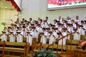 “我要用口极力称谢耶和华,我要拍手跳舞赞美祂。”牧师证道结束后,在旌旗班的律动伴舞下,赞美会开始。