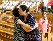赞美会结束后,诗班高诵诗歌,欢送会众退场;崔明霞牧师带领旌旗班的姊妹跪在圣台十字架前做回应的祷告,感谢神的带领。弟兄姊妹们恋恋不舍的离开了教堂。