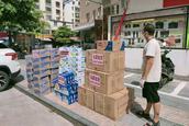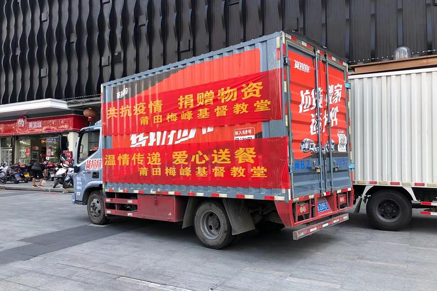 在“爱加陪社工服务机构”志愿者的帮助下,该堂同工将所有捐赠物资及爱心餐和水果装上车送到了仙游、枫亭疫区前线。