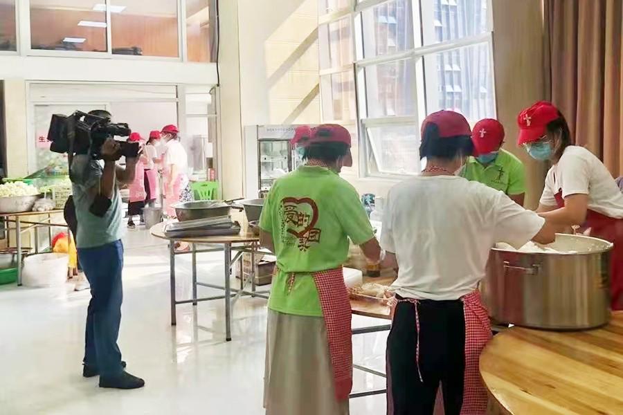想到在抗疫一线的工作人员不能吃上一口热饭,刘秀珠牧师被深深的触动,她马上组织堂会的同工们及后勤的姐妹们为抗疫一线的工作人员做2天1000份的爱心餐。