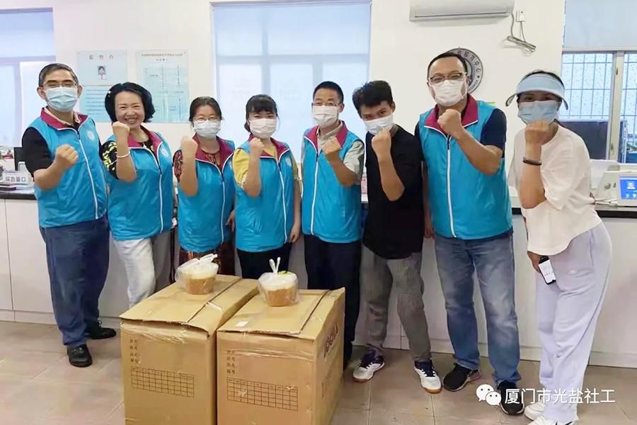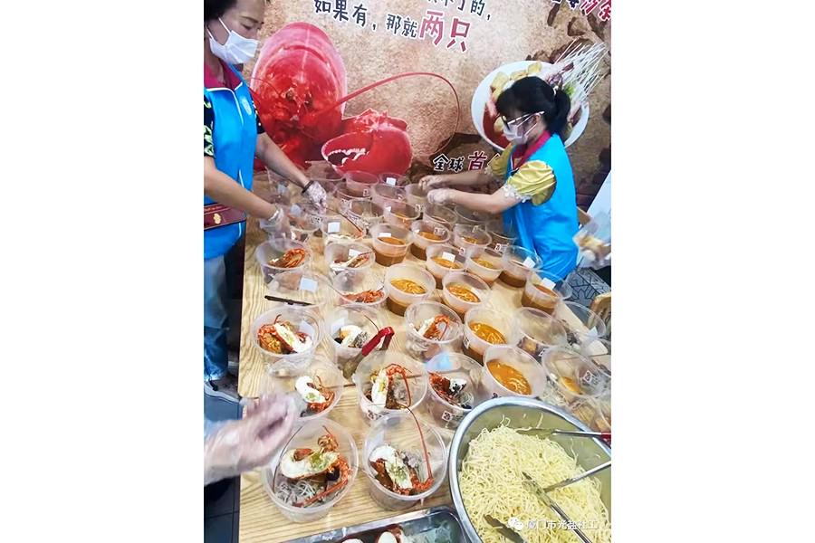 9月19日,厦门光盐社会工作服务中心联合六心堂餐饮企业,共同为莲花五村抗疫一线的社区工作者和医务人员,免费提供了50份豪华大龙虾沙茶面,积极为厦门抗疫支援力量。