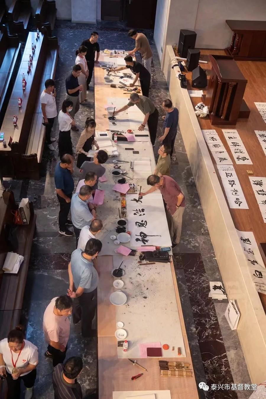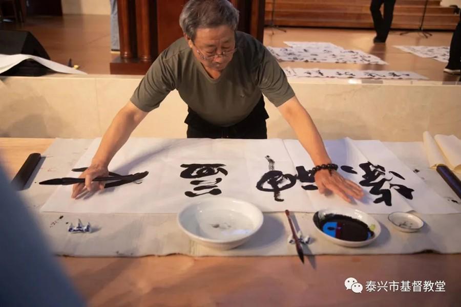 此次活动由泰兴市基督教三自爱国会主办,泰兴市书法家协会协办,泰兴市希望慈善会承办。江苏省书法家协会会员、泰兴市慈善总会会长张泽民先生,中国书法家协会会员、泰兴市书法家协会主席幸平先生,泰兴市美术家协会副主席徐勇先生等著名书画家泼墨挥毫,创作了一幅幅优秀作品。