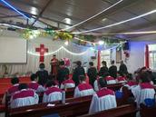 上午10:20,在李牧师主礼下开始了庄严肃穆的圣餐礼。李牧师邀请一诗班再次登台,献唱了《如果》这首赞美诗歌。钢琴音乐奏响如潮似水的悲壮旋律,姊妹们爱主的情感再次释放唱起。主啊,我们这些不懂事的孩子,我们这些曾经的罪人。是你把我们在患难中一个个扶起,是你用十字架上的宝血洗净我们的罪孽。在今天,如果我们还在贪爱世界,那我们的良心还何在;如果我们还不懂加略山的爱,那我们妄为神的后裔后代。每当想起主对我们的恩爱,我们还有什么不能放弃;主啊,你的恩典够我们用,跟随你走天涯路直朝天国奔!