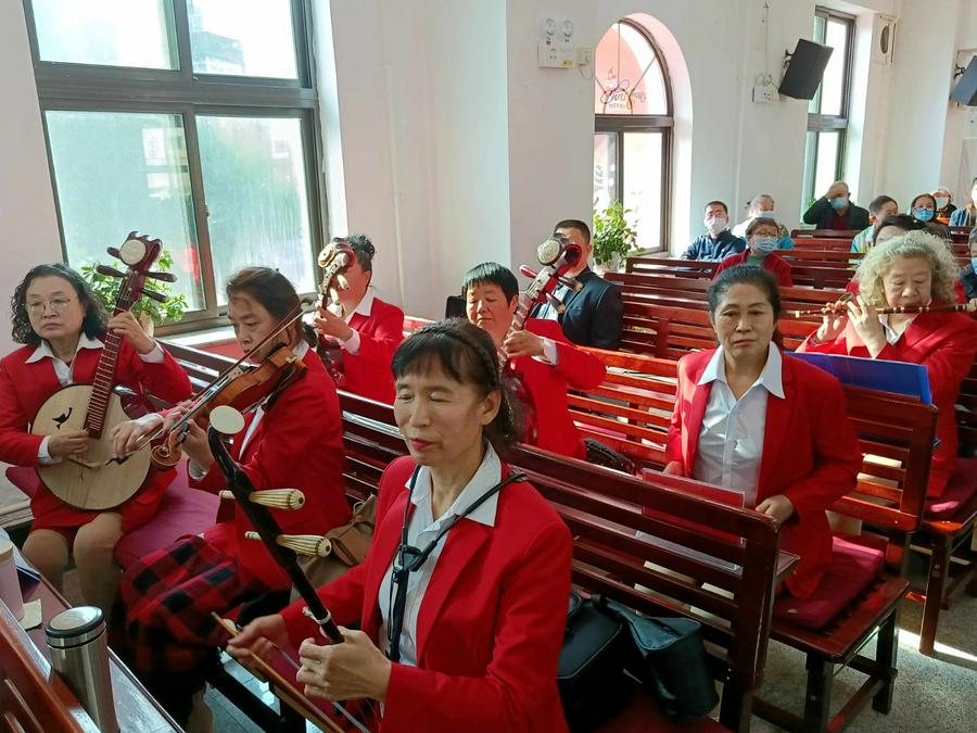 鞍山绿化街教会的弟兄姊妹穿着节日喜庆的服饰,将经过彩排、审查的精彩的合唱、独唱、舞蹈、器乐合奏等节目献给三一的神,感谢主一年来所赐的菜蔬水果、粮食丰收,感谢又是一个好的年成,更感谢主赐灵里的恩上加恩、力上加力的大丰收。