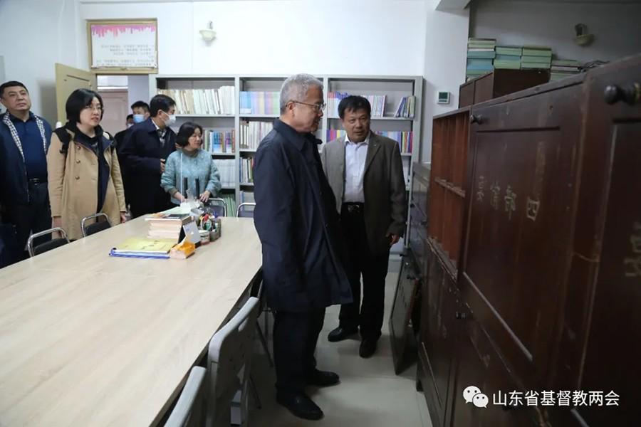 山东省基督教两会副主席副会长李洪玉牧师从山东神学院历史、管理、教学等方面作了情况介绍,山东神学院自2011年升格为本科院校后,通过不断优化环境设施、加强管理、培养师资,不断提升规范化管理水平和神学教育质量,致力于打造新时代爱国爱教人才培养基地;