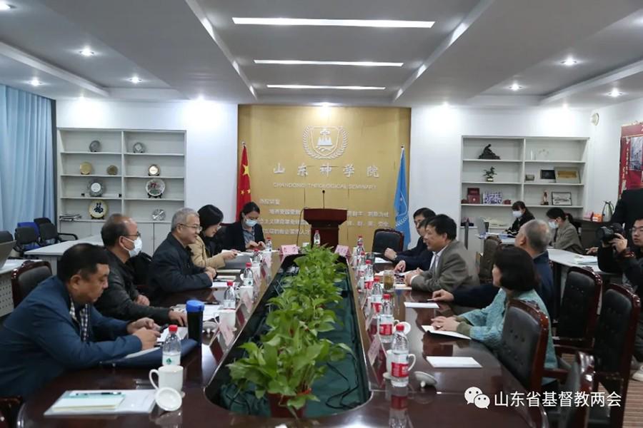 袁莎副院长希望与山东神学院一道共同发挥地处齐鲁文化之地的优势,以文化浸润为抓手,推进基督教在观念、制度和社会生活中国化,加强在经典和教规教义层面的中国化阐释,进一步深化神学思想建设,打造齐鲁神学体系的山东学派,为推进基督教中国化做出新的贡献。