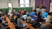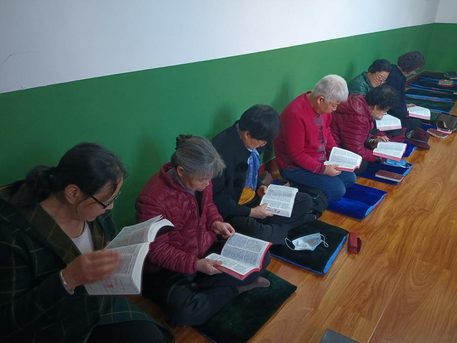 这时候的祷告室没有一丝杂音,唯有郭爱英长老领读和大家郎朗读经声。郭爱英长老跪在前排,手捧圣经字正腔圆的领读。大家也捧着翻开页面的圣经,跟着郭爱英长老一字一句的高声朗读。这时候的我们仿佛置身于庄严而神圣的课堂,在聆听神那一句句教训我们的话语,感到既严厉又慈爱。