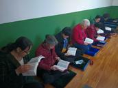 平凉教会图书室,位于教会综合办公楼一楼。里面陈列着上千册各类图书,主要以圣经及灵修方面的书为主。室内中央若大方桌上一盆花苒艳芳喜人,是弟兄姊妹围桌读书和召开小型会议的好地方。上午9:30,看着受邀请的姊妹弟兄来齐了,关于晨祷会的座谈会在李建国牧师主持下开始了。下面是参加座谈会的几位姊妹弟兄们的发言,现整理记述如下: