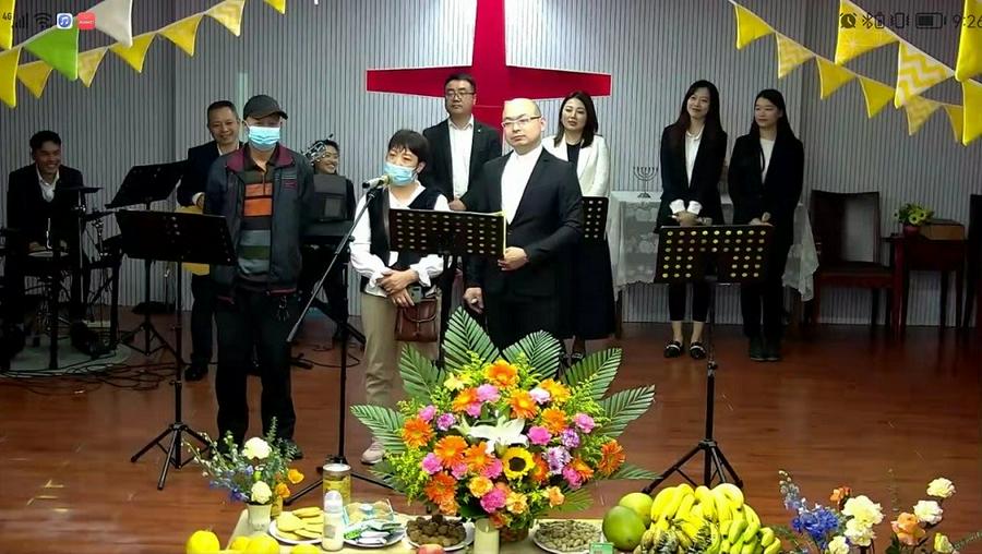 一个半小时的赞美会中,大家一起向神献上《将天敞开》《一万个理由称颂主》《所有的荣耀都归于你》等诗歌。