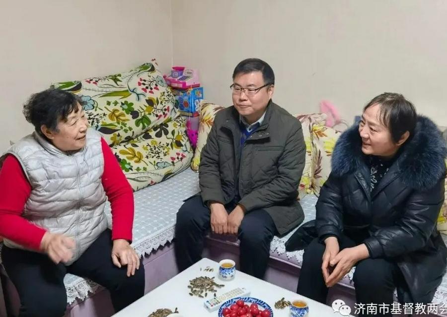 2022年1月13日,正值春节前夕,山东省济南市基督教两会驻会班子到退休牧长张淑媛牧师、殷兰华牧师、王春华长老等教会老牧长家中,开展新春慰问活动。