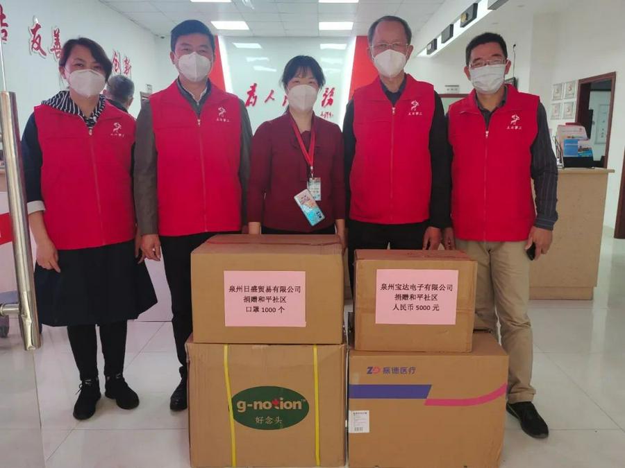 3月20日,福建双美贸易有限公司董事长、泉南基督教堂信徒魏一莉姐妹通过教会将一些食品送到泉州市民宗局下沉的霞淮社区;24日下午,泉州日盛贸易有限公司董事长、泉南堂堂委余日善弟兄和泉州宝达电子有限公司董事长、泉南堂堂委苏永福弟兄分别向鲤中街道和平社区捐赠KN95口罩1000个和人民币伍仟元整,一同支持疫情防控。