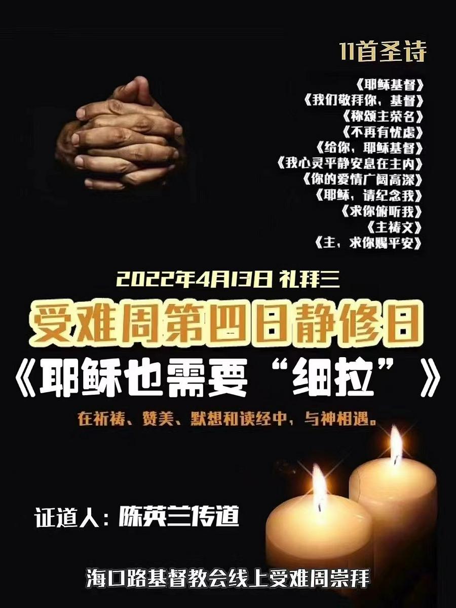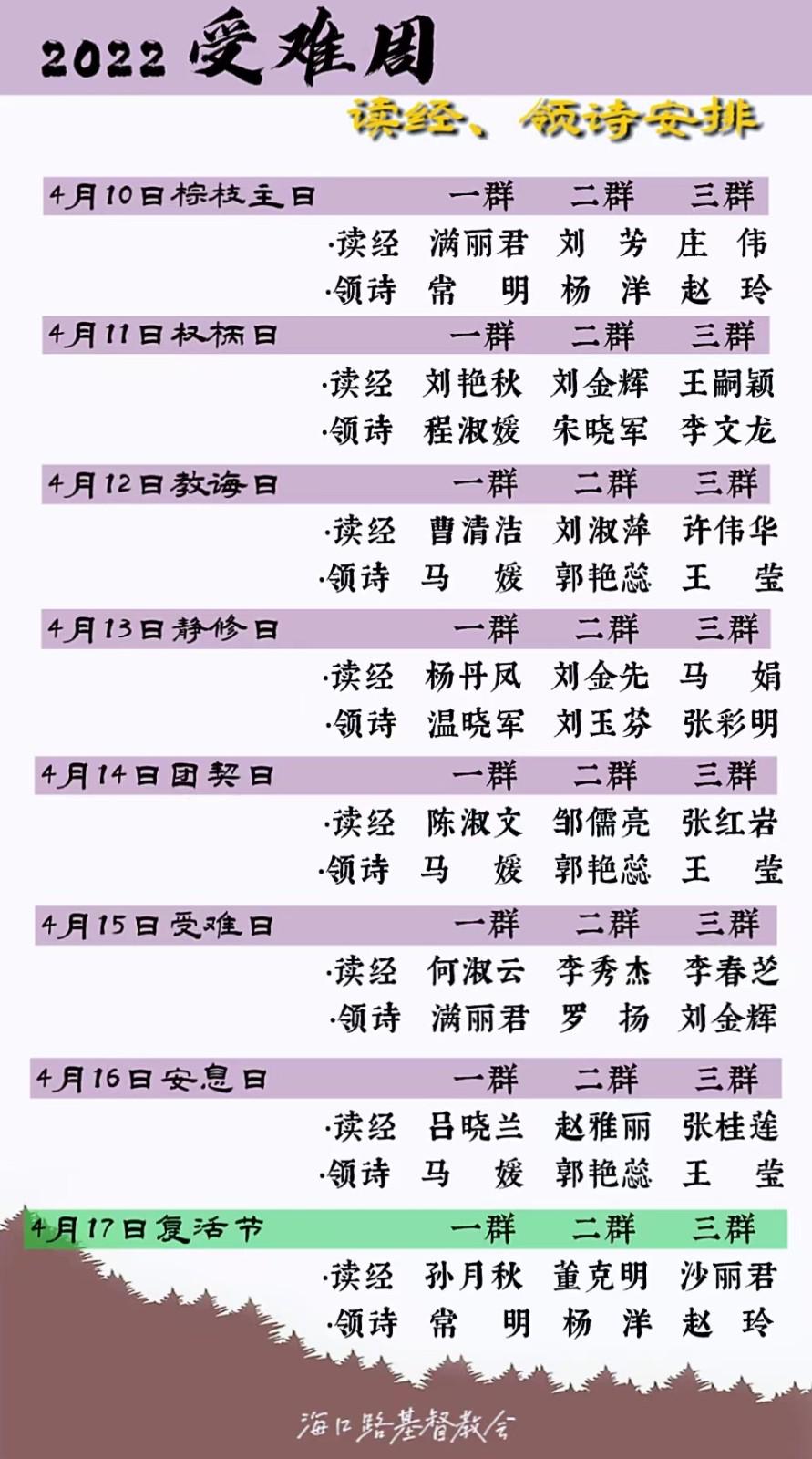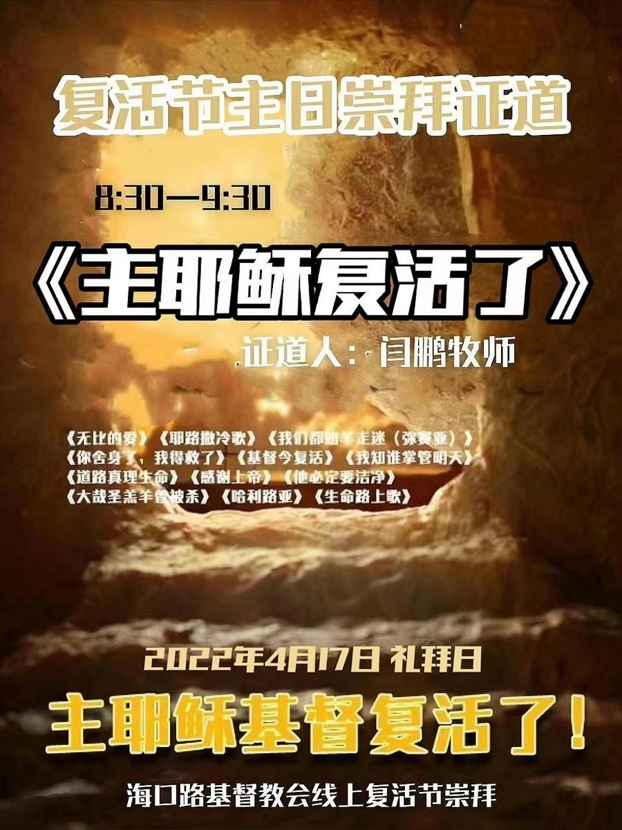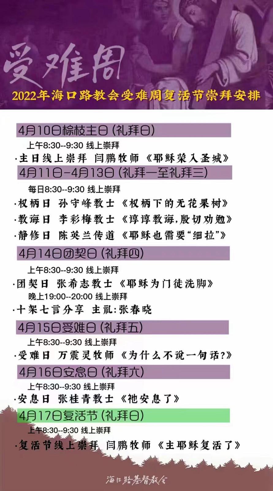 长春海口路教会的受难周与复活节共八日时间,活动安排如下: