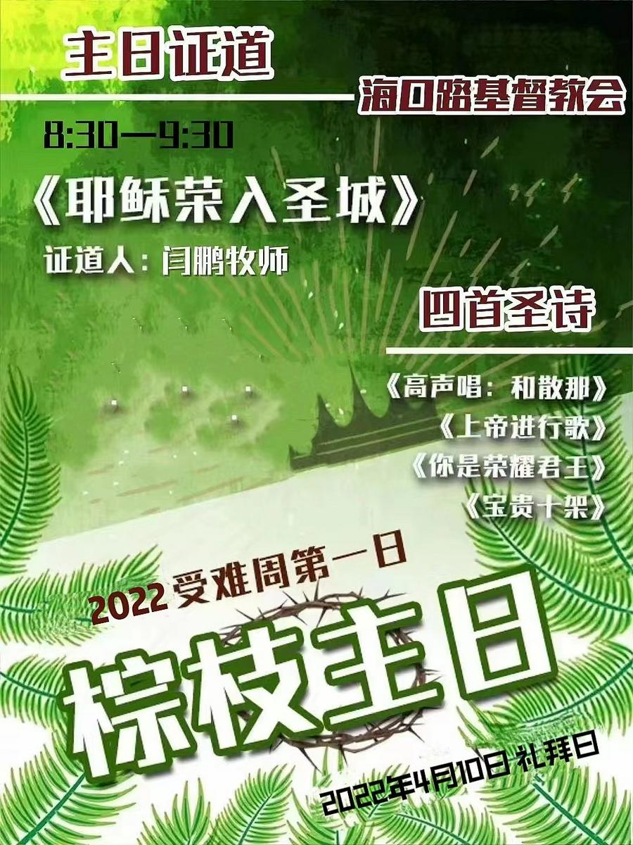 我们祝愿海口路教会的2022年受难周网络崇拜活动在圣灵的带领下顺利开展;我们更“愿我主耶稣基督的恩常与你们同在。”(帖撒罗尼迦前书5章28节)神佑中华,祝愿长春早日战胜疫情、祝愿中国早日战胜疫情,平安之日我们在神的圣殿再相聚!