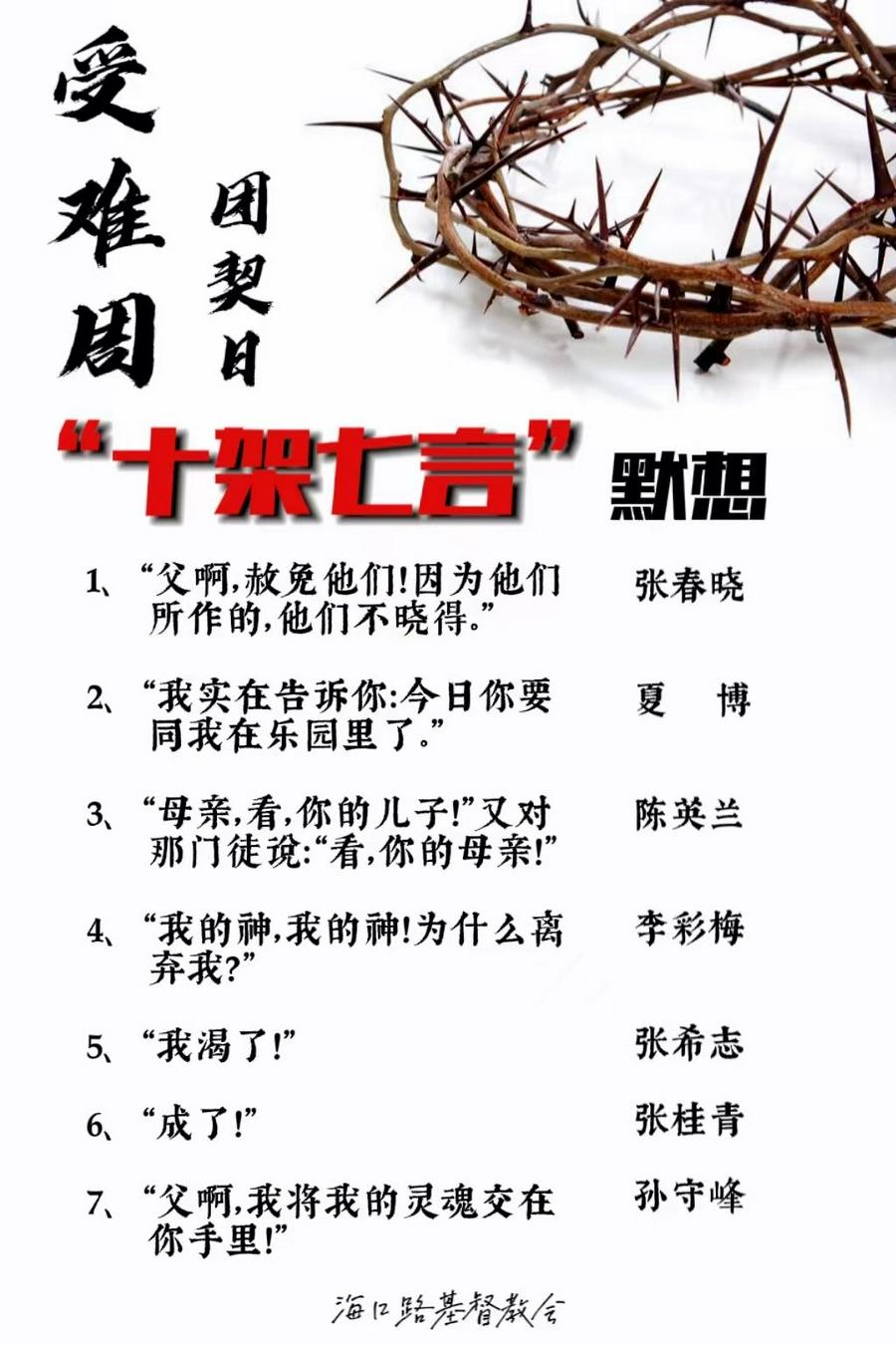 2、4月14日团契日19:00-20:00,教会在“疫情止息吉林平安群”举行《十架七言默想》活动。
