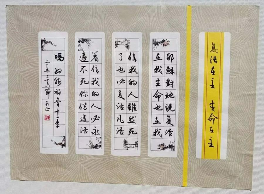 4月17日复活节当日,为满足信徒的信仰生活需求,晋城市城区基督教倡导信徒以硬笔、软笔,楷书、行书、草书等多种笔体书写圣言,正信正行,开展了别开生面的复活节庆祝活动。