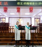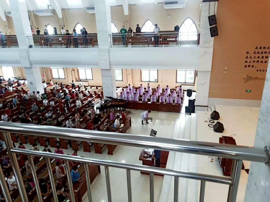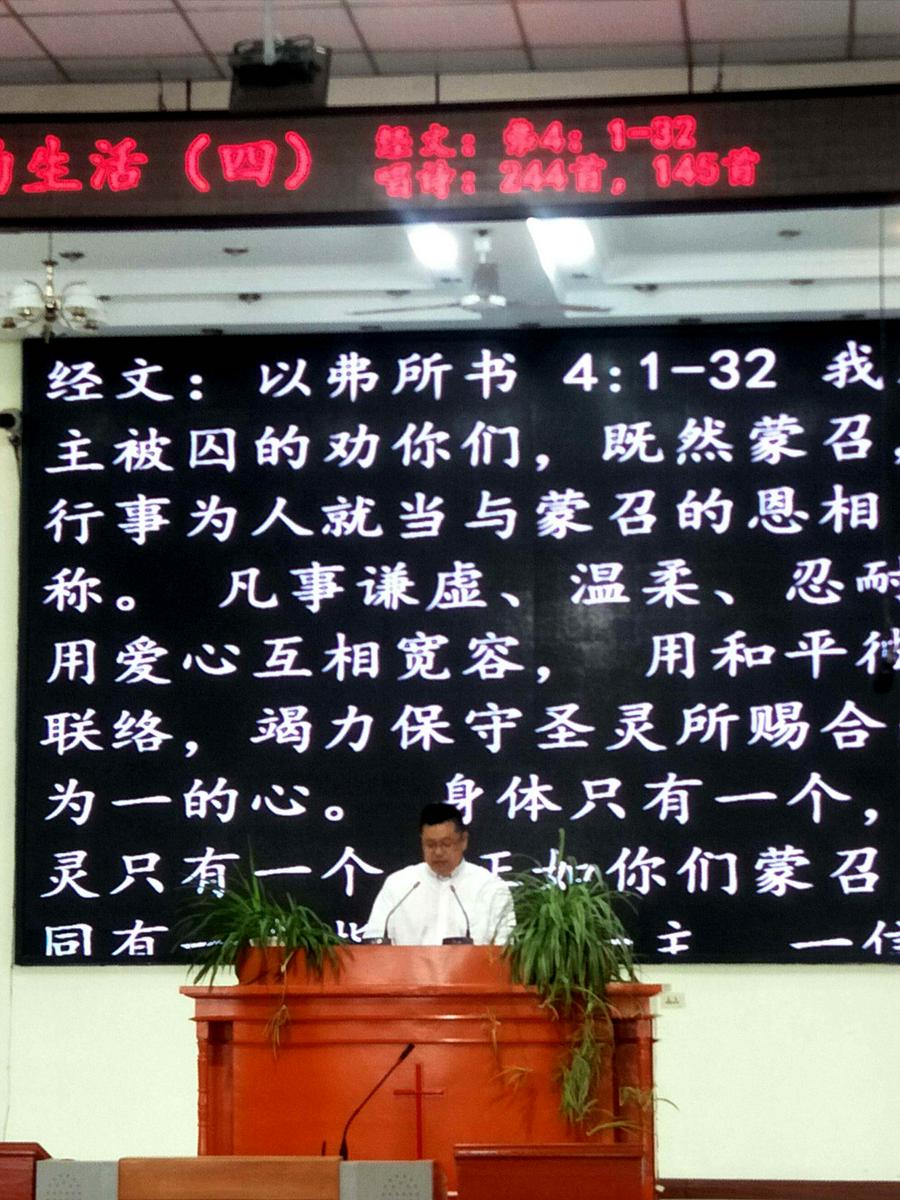 今天的主日聚会恰逢圣灵降临节(五旬节),各聚会的教堂传道人证道的讲章和诗班的赞美,大都与保惠师圣灵有关。同样,有两场或三场聚会的教堂要由一位传道人证道,两、三场下来也是很辛苦。