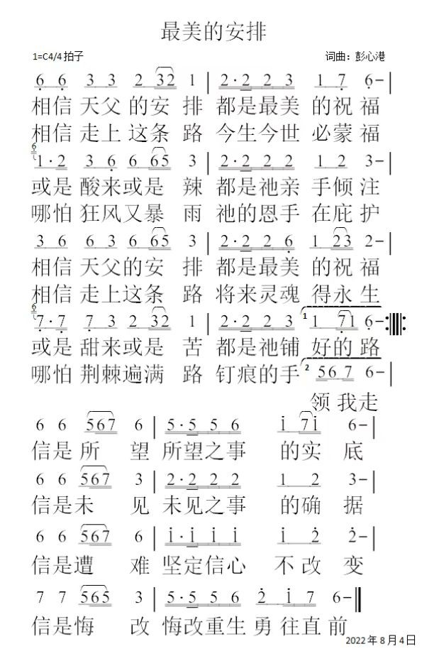 (本歌词谱曲作者为辽宁省大连市普兰店区文化路教会一同工)