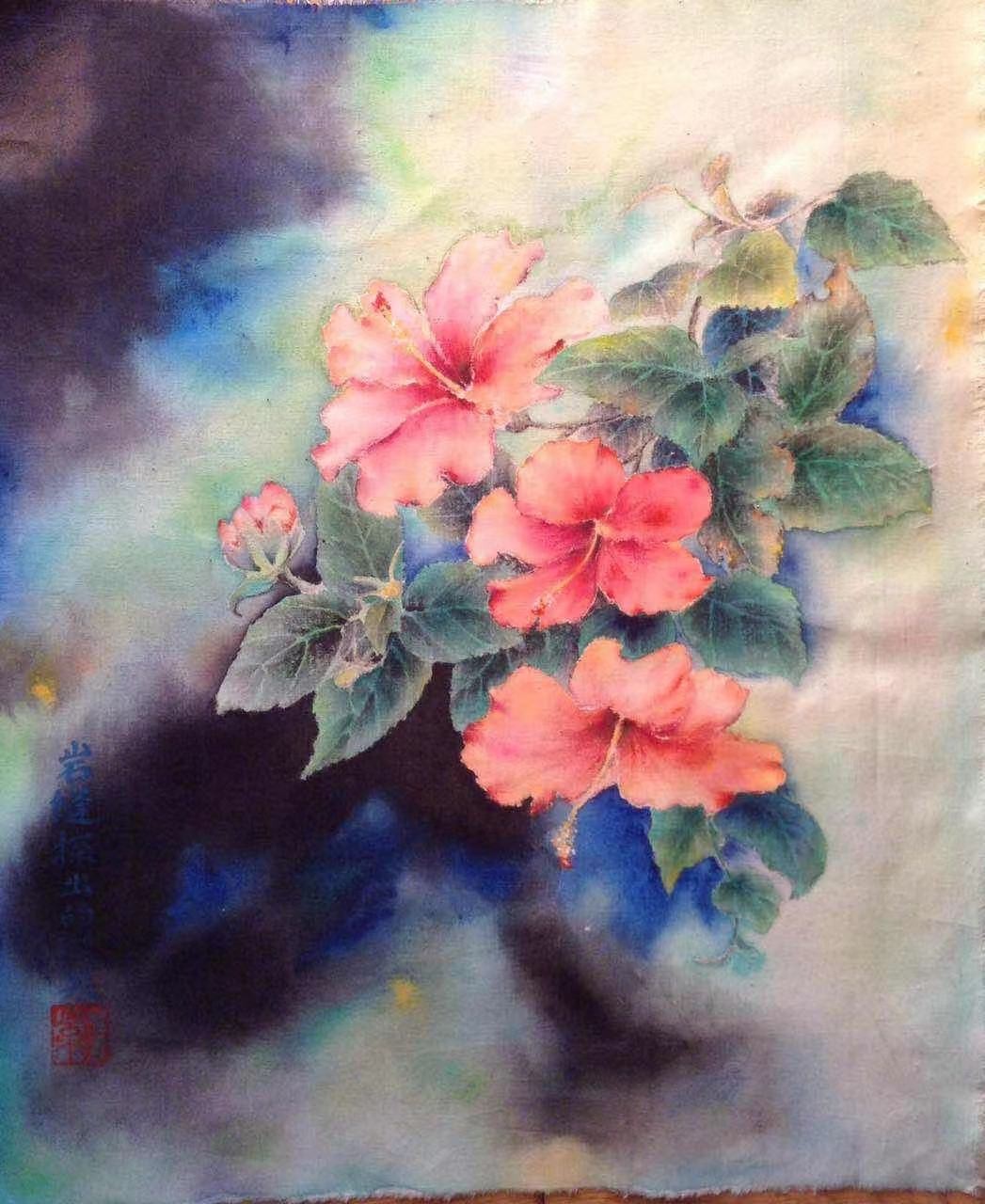 我爱画画,今天画着扶桑花,那是台湾乡下最普遍的野花,俗称为大红花,常绿灌木,常被乡下人当成围墙花,所以总在院落入口或大门进口看见它。今天心中彷佛见到墙上光影晃动,张爱玲的句子不知不觉织进了画布的纤维里:“于千万人之中遇见你所要遇见的人,于千万年之中,时间的无涯的荒野里,没有早一步,也没有晚一步,刚巧遇上了,那也没有别的话可说,唯有轻轻地问一声:噢,你也在这里。”