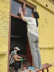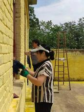 8月25日早上,区两会负责牧长陈丽长老、杨森林牧师、段燕青牧师、办公室李俊珍主任、柴国强以及王帅、郭灵泉传道、张红星、张汇刚、陈建平、孙海荣执事等一行。冒着浓雾,驱车两个多小时专场前往。一下车就投入紧张的劳动,他们清除杂草,外墙喷涂涂料,油漆门窗、大门,厨房内外涂刷涂料。一个个神的仆人争先恐后,不怕苦累,在烈日下奋力做工。尤其是陈丽长老年过花甲仍踩在凳子上细心擦拭玻璃,五十多岁的“白发”牧师杨森林也手握喷枪喷刷涂料,住在当地的闫桂英长老虽年逾古稀仍和大家一起在厨房准备饭食,其他同工也和当地弟兄姊妹有条不紊地积极配合各尽其责,到下午四时许,彻底完工,教堂内外焕然一新,院内整洁,玻璃透明,内外墙黄色涂料增添了靓丽,大红门窗引人注目,特别大门上鲜红的十字架熠熠生辉,为绿树掩映的小山村带来了一抹亮色。