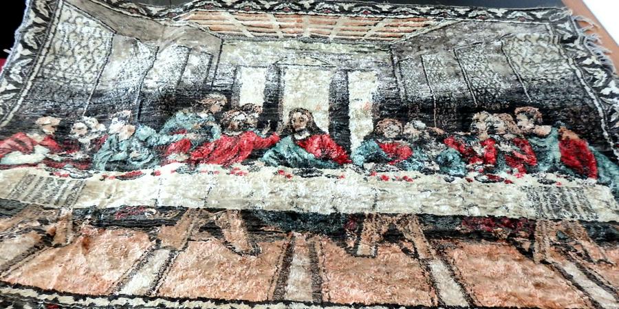 但是遗憾的是,由于这个教会的档案管理工作起步比较晚,所以看不到百年前历史的资料,只看到一件出自于50年代的,由一位曾经参加过抗美援朝老战士奉献的一幅《最后的晚餐》挂毯(见图)。