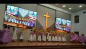 本堂的赞美与其他教会的赞美结合。为了丰富平安夜和圣诞节的欢庆内容,他们既有本堂的节目,如合唱、独唱、舞蹈、器乐合奏等,同时也转发了国内其他有的教会的欢庆活动内容,使大家在欢庆中得到更多的感恩欣赏。