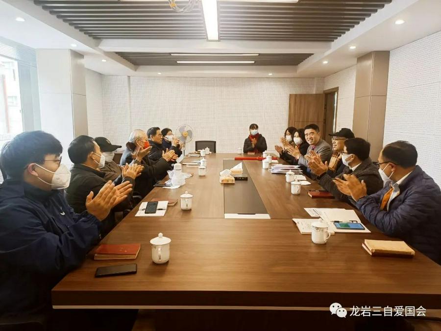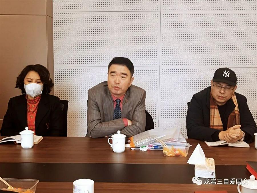龙岩市新罗区、永定区、上杭县、武平县、连城县、漳平市、长汀县代表领受祝福与慰问。