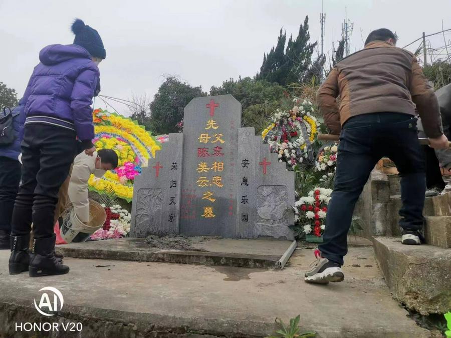 2023年1月21日除夕上午,在教会和家人的护送下,袁相中长老的骨灰与早些年归天家的师母合葬。