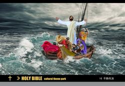 主耶稣吩咐门徒渡船,于是门徒就遵照主耶稣的吩咐开船。让门徒没有想到的是湖上忽然起了暴风,并且船快满了水,形势非常危险。哪怕是渔夫出身的彼得和约翰也慌了神,害怕命丧于此。他们急忙叫醒并责怪在风暴中还能沉睡的耶稣不顾门徒生命安全,醒来的主耶稣首先责备门徒没有信心,随后平静风浪,转危为安的门徒大为惊奇,风和海也听命于主耶稣的权柄和能力。人生旅途也如同航海,风浪随时发生,在危险中有时也会误解主,抱怨主,尽管如此,在风浪中主耶稣依然与我们同在,是我们随时的帮助,同时不断更新我们对他的认识。
