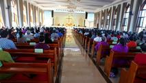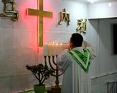 今天后盐教会的弟兄姊妹们喜乐的早早来到教堂,大家带着口罩有序就坐,参加读经、祷告和赞美的聚会。上午七点三十分,诗班有序的进入主堂赞美,开始了主日的崇拜敬拜和布道。