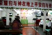 头一次去这个教会真的有点费劲:后盐村正处于大连市拆迁和高架桥建设的阶段,村庄里各种小房子和低层楼房交错纵横,道路崎岖不平,不好走,从外观根本看不到教堂在哪里。感谢主!几经周折遇到一对去教堂的夫妻,才一同来到了村里一个不起眼的地方。看到一个大门上方的十字架,我的心里才踏实:这是教堂,到家了。