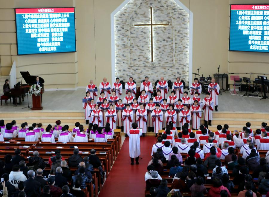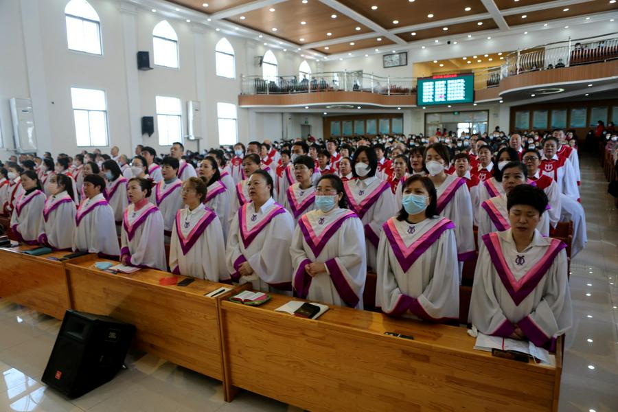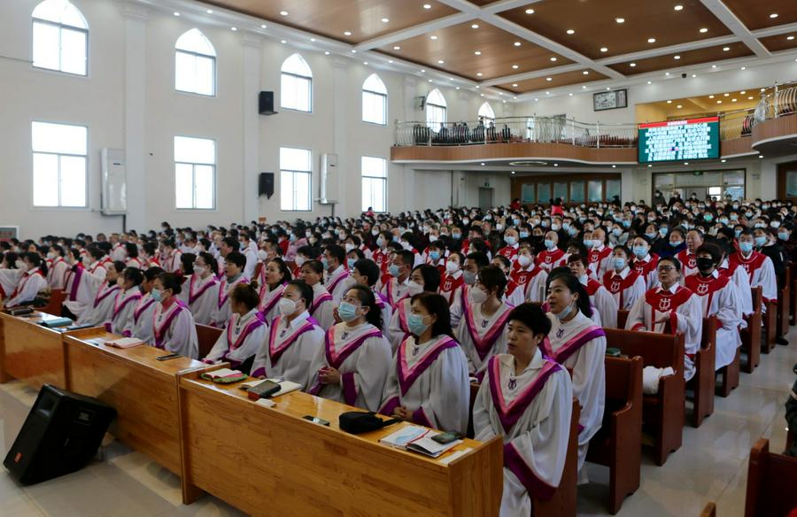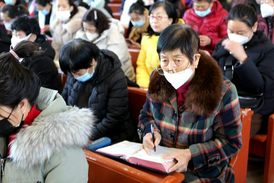 今天,我看到了信徒们踏雪来到教堂,有的是一家人、有的是年轻人搀扶着老人来、有的是结伴而来,主堂已经坐满、一楼副堂也是有腿脚不便的弟兄姊妹在聚会。据付长老介绍:近来恢复实地聚会后,教会举行了圣餐礼拜和赞美会,每场聚会的人数基本都在1000人左右,弟兄姊妹敬拜的热情没有因为疫情和其他环境而减少,比较稳定。