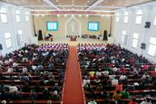 在宽敞明亮的教堂主堂,我看到了服侍的同工们笑容可掬的欢迎前来聚会的会众,送上主内的问候;信徒有次序的在主堂和副堂就坐,跟随青年同工赞美;教会的各项规章制度在教堂的明显之处展示,从财物制度到教职人员的社保、医保规定等比较完善、健全;图书馆、会议室、档案室、同工办公室、教职人员办公室、无障碍的副堂等设施俱备,使人感到这真是功能、设施比较完善、规模较大、宏伟,所以才在当地人被称为“大教堂”的圣殿。