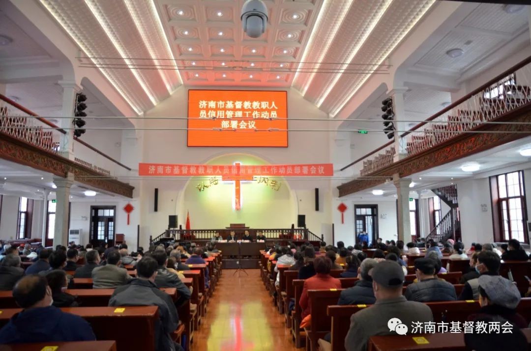 3月17日上午,山东省济南市基督教两会在经四路教堂召开全市教职人员信用管理工作动员部署会议。省、市、区业务主管部门领导应邀出席会议。会议由市基督教三自爱国运动委员会主任赵克玉同工主持。