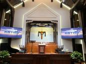 当晚,思澄堂外早早亮起明灯,距离礼拜还有半小时,主堂内已有信徒陆续进场,读经祷告预备迎接礼拜。