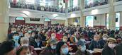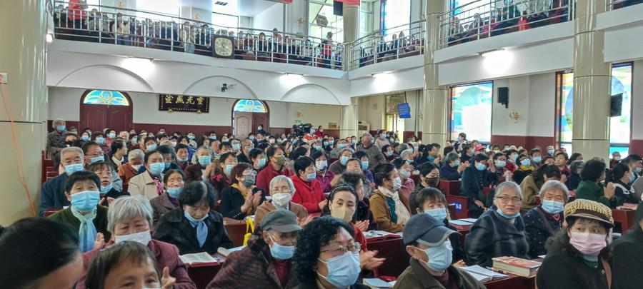 步入堂内,宽敞明亮的教堂装饰一新,座无虚席,大家一起学唱新诗,赞美的歌声,回荡四方。