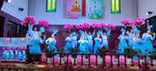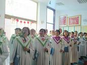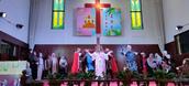 三十多人的圣诗班身着统一圣服登台献上了《十架七言》《牺牲的爱》《十架永存》《主复活》《我知道我的救赎主永远活着》,歌声悠扬,令人无不被深深感染。