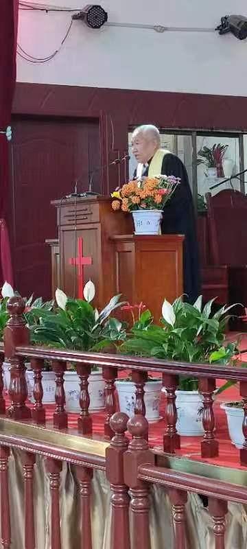 上午九时三十分,七响钟声敲响,主礼人、证道人、诗班等人伴随着进堂礼的乐曲缓步迈入 ,他们手持鲜艳的百合花,依次有序落座。主礼人杨森林牧师首先向会众问安,以《诗篇》100篇宣召,大家共同合唱新编赞美诗第一首《圣哉三一歌》;然后一起以《使徒信经》宣告信仰,以启应方式诵读《诗篇》84篇,会众唱诗《大启乐园歌》,此后杨牧师献上祷告,诵读了经文诗篇118:19-24、歌罗西书3:1-4、马太福音28:1-10的经文。