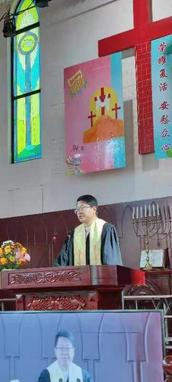 此后本堂黄海林牧师以马太福音28:1-10的经文做了《主复活了》的主题证道,他首先祝弟兄姊妹复活节快乐,也让大家向身边的弟兄姊妹互致平安喜乐。他说,经过三年疫情,我们又欢聚在一起喜庆耶稣基督复活,心中非常感恩,感谢神的带领和特别的拣选,主耶稣给我们带来了平安喜乐和安慰的力量。