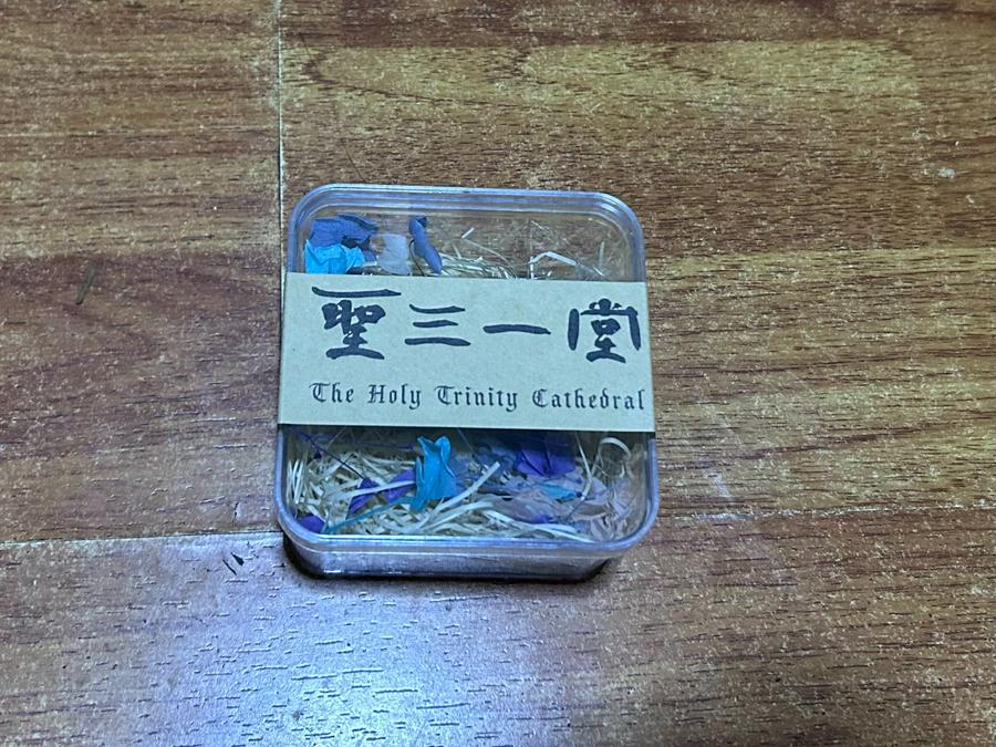 崇拜结束,走出主堂,圣三一堂为参加礼拜的人发放了小礼品。院子里还摆放了圣三一堂的纪念邮票和为了纪念重新开堂制作的书籍,人们可自行购买,凭感动奉献。