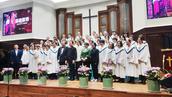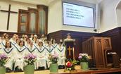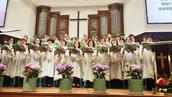 证道结束后,圣歌团再次向大家献上了二重唱《死啊,你的毒钩在哪里》、男声独唱《上帝爱世人》以及合唱《主的手》《至好朋友就是耶稣》《我知谁掌管着明天》《全得胜》《荣耀尊贵的主》等多首颂赞。在这些颂赞曲中,有的恢弘庄重、雄浑有力,见证着父子圣灵向世人永不离弃的爱;又有的情深意切、真挚动人,向主诉说并宣告着领受救恩的感动与愿与主同死同活的誓言。