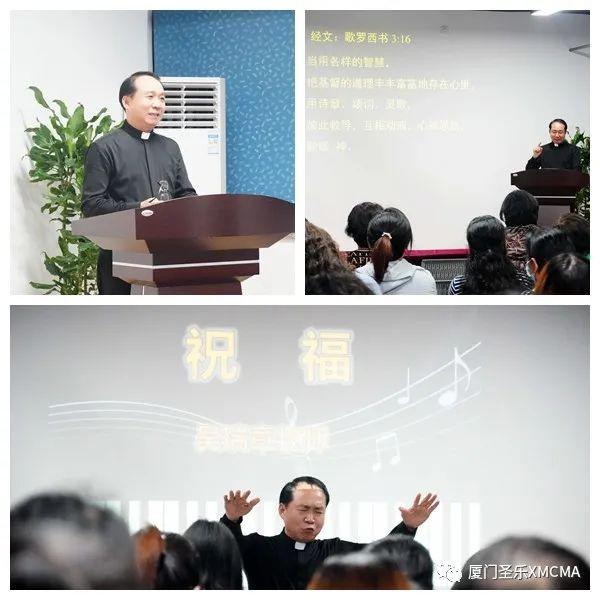 开班仪式上,厦门市基督教两会会长吴瑞章牧师引用歌罗西书三章16节经文勉励学员们在老师的教导下努力学习,用各样智慧牢记主道,提升圣乐水平,为主做美好的见证,更好地服侍、歌颂神。