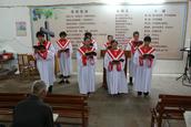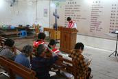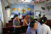 第三站:合浦县公馆聚会点。这个点的地理位置距离广东省近,应该说是毗邻。在大雨中我们来到了这个聚会点,今天是他们聚会的日子。他们的聚会点设立在一个仓库里,带有典型的南方特色的白色外墙,室内比较宽敞。今天聚会的肢体约有20人,8位同工组成的诗班献诗,陈考思长老、张业忠牧师问候大家,并证道、讲话。令我感动的是:一位姊妹可能是因为视力不好,用放大镜在读经。分别之时大家一起合影留念。