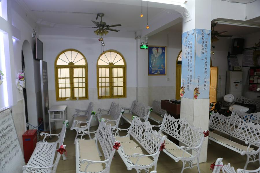 第一站:北海市基督复临安息日天成基督教会。我们再次见到了教会负责人郝春艳姊妹。今天是教会聚会崇拜的日子,信徒们聚集在一起开始赞美。这间教会的会众大多数是外地来北海的,大家从四面八方来到北海,2011年组成了以基督为元首的教会。教会自成立以来,遵守“当记念安息日,守为圣日。六日要劳碌做你一切的工,但第七日是向耶和华你神当守的安息日。这一日你和你的儿女、仆婢、牲畜,并你城里寄居的客旅,无论何工都不可做, 因为六日之内,耶和华造天、地、海和其中的万物,第七日便安息,所以耶和华赐福与安息日,定为圣日”的圣训,除了礼拜六聚会外,在圣诞节、重阳节等节日组织信徒载歌载舞赞美上帝,成为大家喜乐的家园。